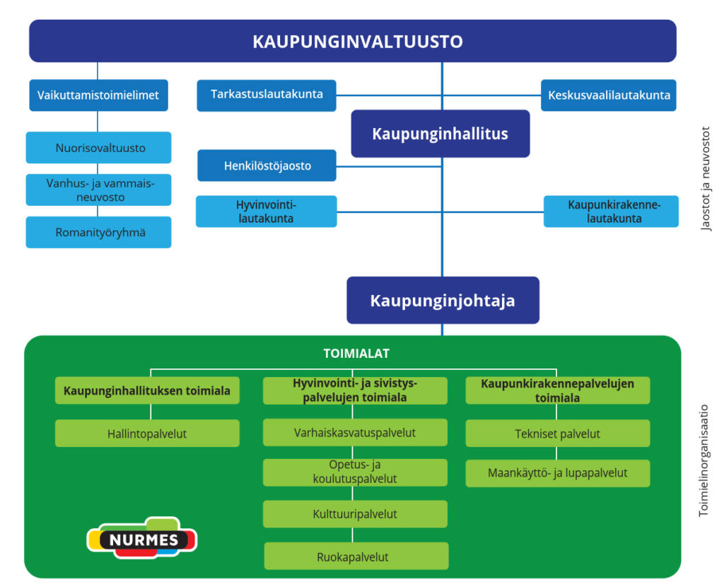Nurmeksen kaupungissa ylintä päätösvaltaa käyttää kaupunginvaltuusto. Valtuusto valitsee kaupunginhallituksen ja lautakunnat.